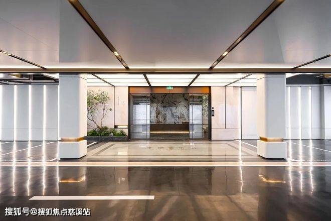 地下车库标准也很高,主车道铝板吊顶,归家大堂奢石背景墙,仪式感拉满↓