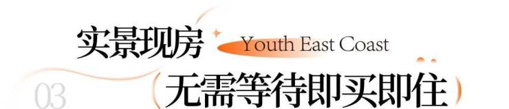 青春东岸,全实景呈现,不仅给予业主满分的交付安全感,更能让业主体验无需等待的幸福感。 现房现证,即买即住,轻松兑现生活美好。
