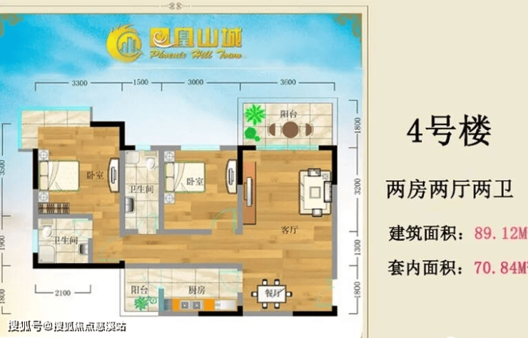 4号楼 两房两厅两卫 建筑面积89.12㎡