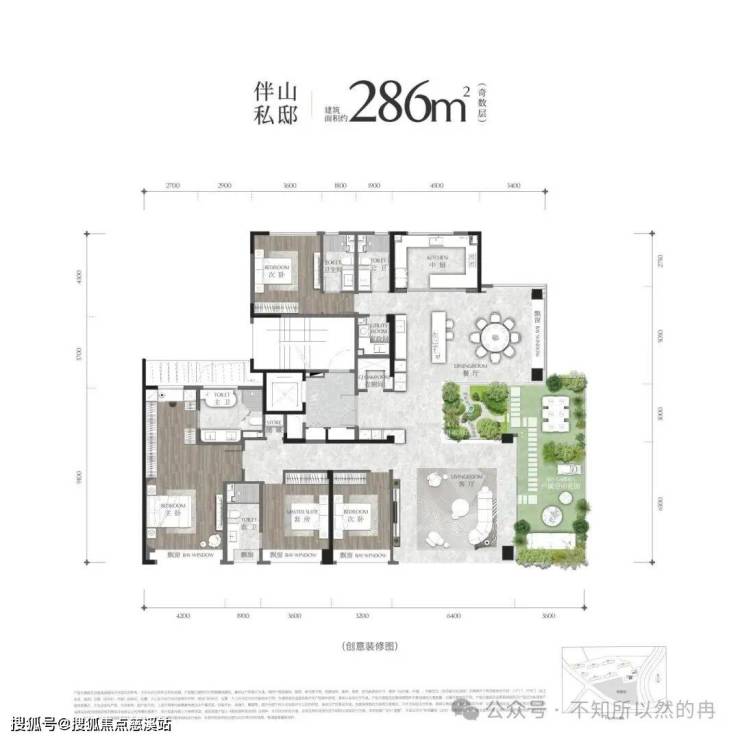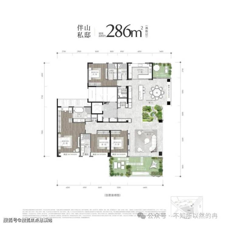 户属花园与客餐厨洄游互动,定制观山视角(如286㎡户型)。