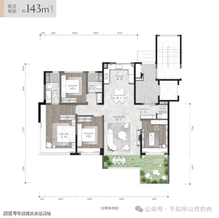 奇偶错层布局:户属空中花园挑空设计,纵向空间翻倍,可改造为室外会客厅或植物园。