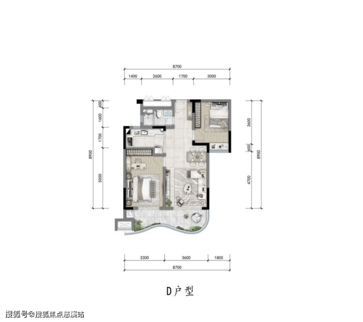 ▼“D”户型图约85㎡两室两厅一卫▼