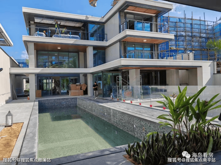 绿城中国"望庐系"山海度假作品,位于三亚海棠湾北段半山台地,总占地约12.5万方,建筑面积15万方,容积率1.2,规划66栋3-7层坡地院落,主推158-880㎡全维度假资产,毛坯均价65000元/㎡