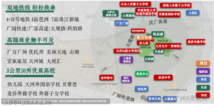 天外智谷分为两个校区,越秀观樾配建24班小学;缦云广州配建的九年制学校(18班小学+27班中学),今年9月份开学。