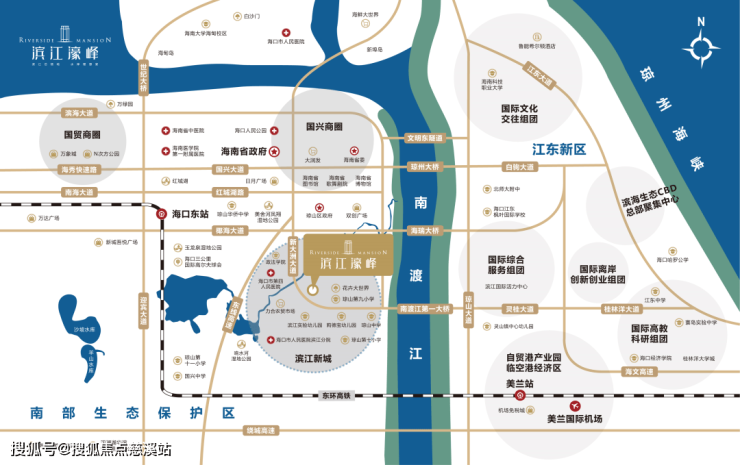 海口滨江新城板块价值腾飞,滨江新城位于南渡江左岸,是海口城市跨南渡江发展,促进江东组团发展的重点区域,也是未来的新城中心、新型生态居住区。规划目标为把滨江新城南区建设成为体现绿色生态理念的滨江居住区。从滨江新城片区的规划范围来看,东边即是江东新区,将享受江东板块发展利好;西北边是国兴CBD,北边是省委所在地及海口“大动脉”国兴大道,项目区位优势毋庸置疑。