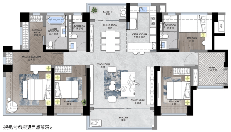 【园林】处滨江艺术水脉之上,享世界湾区南向一线江景资源;全长约2公里,投资2个亿打造,分为艺术水岸、市民剧场、生态体验三个功能区,涵盖滨水步道、儿童乐园、滨水沙滩等18个活动场所。