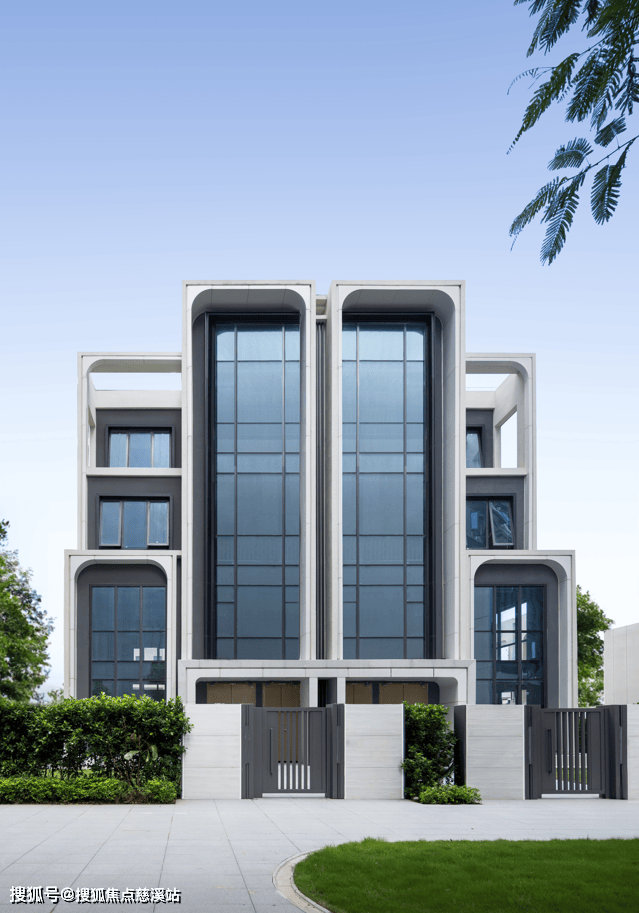 住宅立面设计通过简洁大气的框体语言、大虚大实的形体关系、优雅弧角的母题符号打造专属本案的定制立面形象,灰为主,白为辅、极具构成感的色系划分,形成了多层次,虚实鲜明的公建化住宅立面形象。
