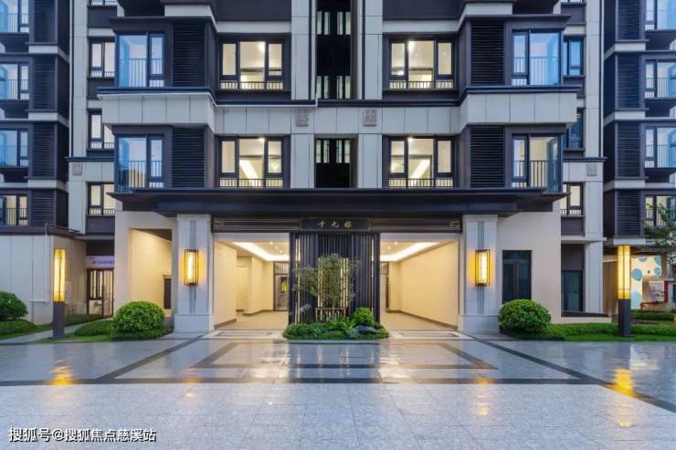 新中式大门气势恢宏,门前瑞兽石狮接福纳吉;归家动线上的九级台阶由低及高,寓意平步青云、步步高升;两侧的古典宫灯,为业主们营造尊崇的归家仪式感。