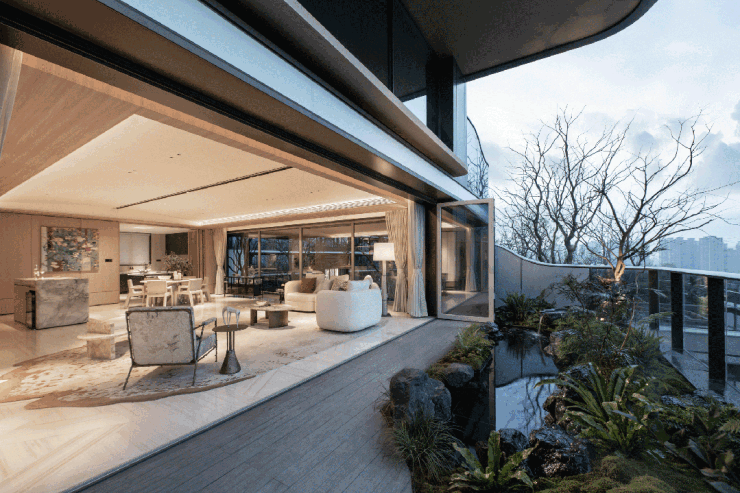 ▸ 建筑采用"层退式"布局保障观湖视野 ▸ 立面融入钧瓷釉色变幻灵感 ▸ 地下车库打造"星河顶棚"艺术装置