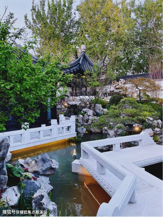 73号合院园林景观设计由国际景观大师宋淑华亲自操刀。江南园林的漏窗、月亮门、曲桥、风雨连廊、堆石、四季植物等传统营造范式,在园林设计大师的精心编排下,呈现出诗情画意的江南园林美景。穿过月亮门,人在曲桥上行走时,仿佛走进苏州古典园林,置身于一幅生动的画卷之中。