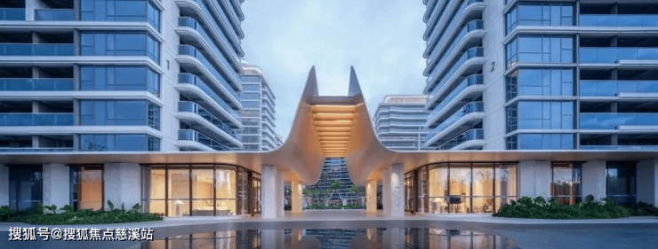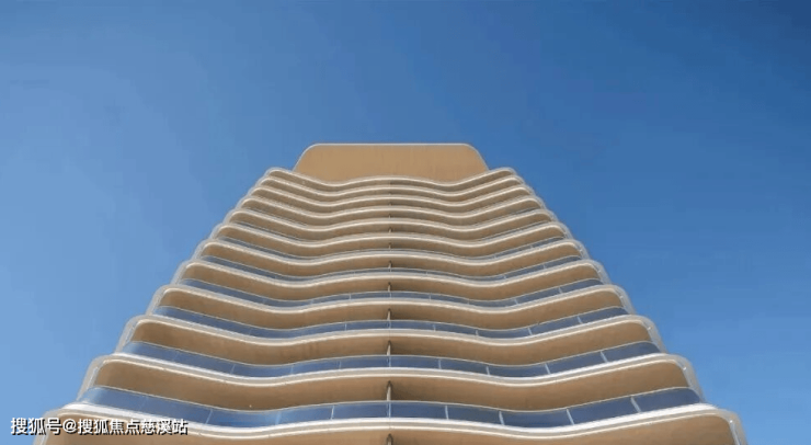 建筑外立面以 “简约大气” 为基调,横向铝板线条与飞片型材造型交织,端头弧形元素搭配变异阳台设计,再加上点睛的 “游艇造型塔冠”,让建筑充满灵动韵律。