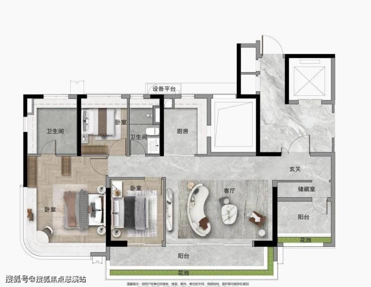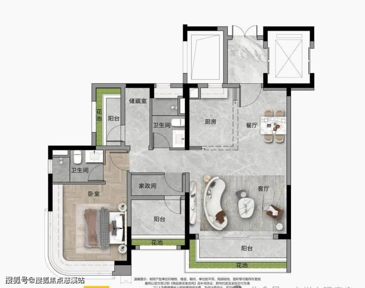 “宽幕视野” 南北通透双视野,主卧270°转角飘窗