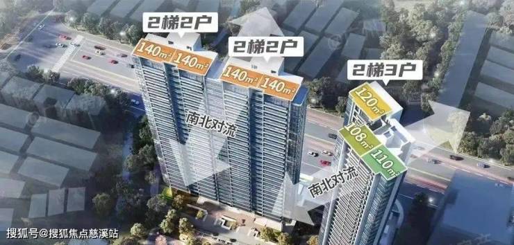 2号楼为两梯三户,分别有三种户型,108/110方做三房,120可做四房。