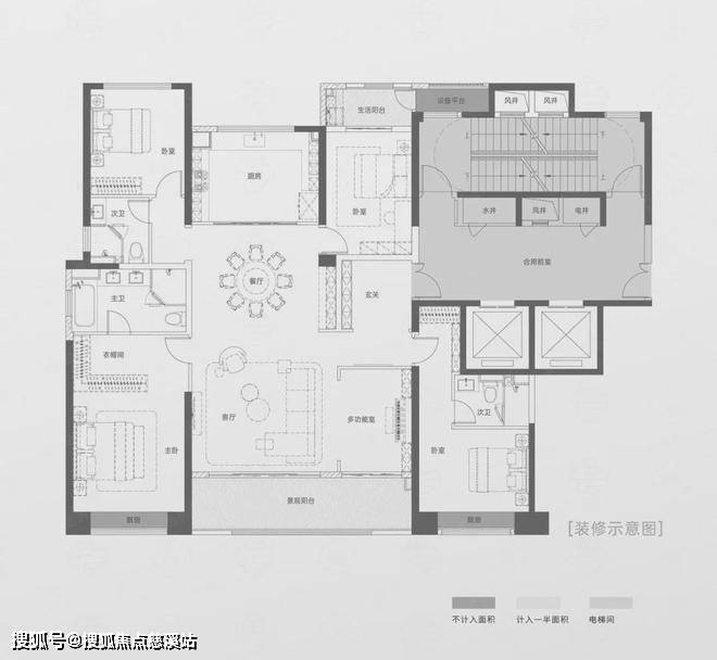 目前长沙大平层迭代至3.0了,这应该算2.5代吧。第一代就是悦府大平层开山之作,第二代就是招商双境,在品质上开始有些追求但不够,第三代就是要补足明显拉胯的东西,比如外立面、地库材质;户型层高;架空层设置等。