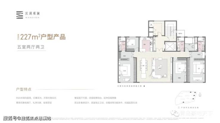 建面约227㎡户型产品:五室两厅三卫