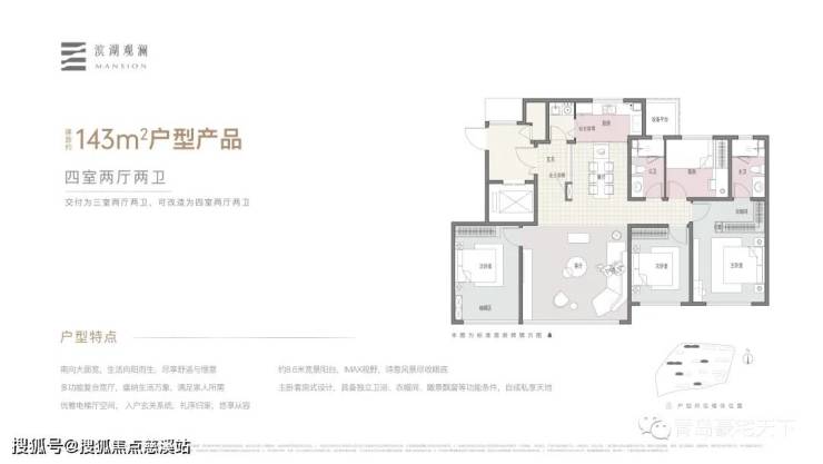 建面约143㎡户型产品:四室两厅两卫