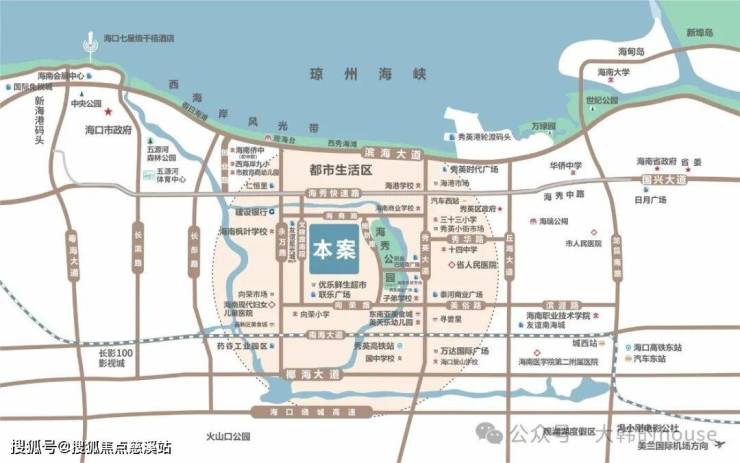 人文休闲:观海台、假日海滩、高尔夫、游艇会、帆船训练基地、秀英炮台、海瑞公祠等景点、配套荟萃;