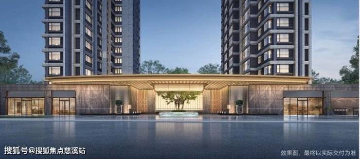 建筑入口采用极具气势的弧形大挑檐,打造长约50米、高约7米的酒店 式入户大门。泗水归堂环岛落客设计与景墙,营造高奢礼序的归家仪 制,约130m的“城市会客厅”提供休憩赏景、会客交友的私享天地
