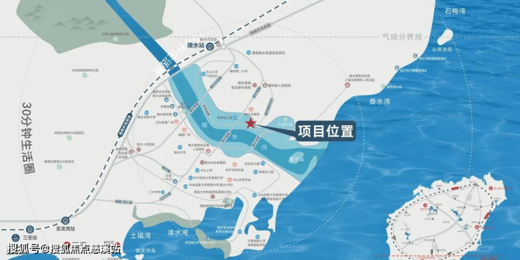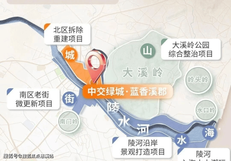 项目规划总面积约11.4平方公里,涵盖五大板块。依陵水河开发,傍山望海、融城蕴街,构建集栖居、商业、产业于一体的“山、水、街、城、海”功能复合型滨水理想新城。