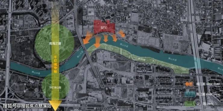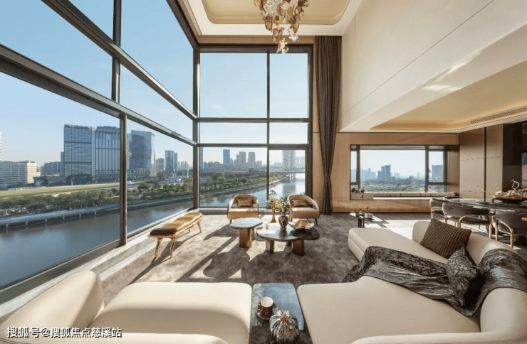 灯湖缦云项目位于佛山核心经济发展区千灯湖北延段,与南延段中心隔江相望,紧邻南海之眼,有S湾曲水环抱,坐拥首排无界一线江景,属稀缺的城市滨江生活带。如何极致性调动项目的豪宅基因,是摆在设计团队面前的终极命题。