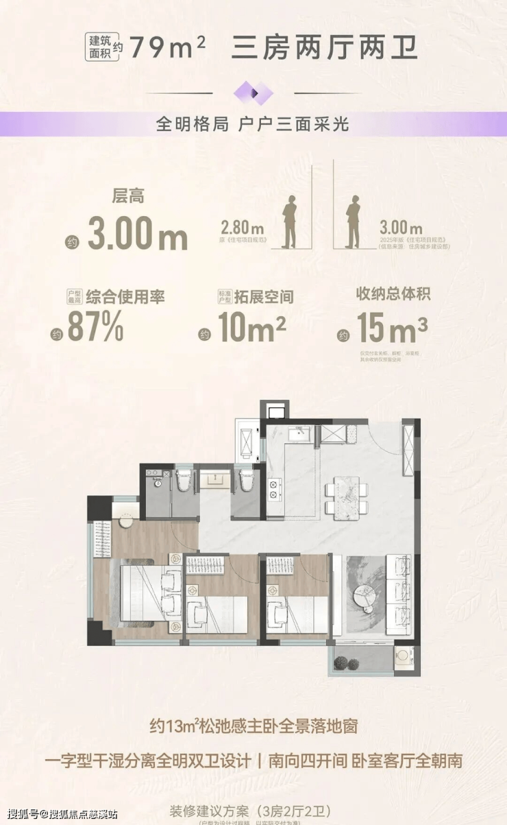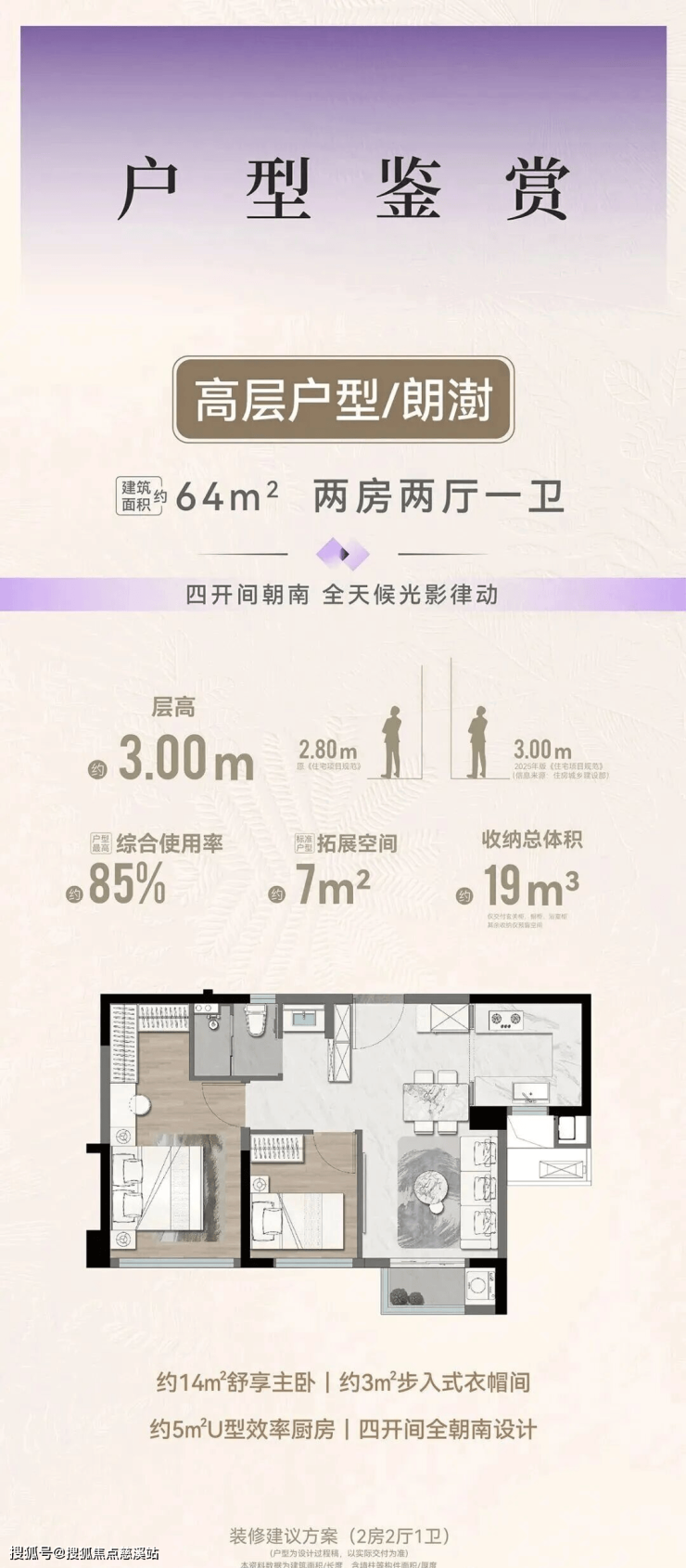 推出64㎡两房、75-79㎡三房、89㎡四房及95-112㎡洋房等多种户型,得房率高(84%-98%),空间利用率高,部分户型带电梯前厅、晒台等实用设计。
