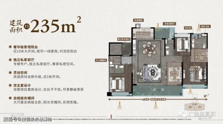 保利华南3.0豪宅时代,235产品升级,最具尺度感的餐厨客一体空间,超强总统套房级主卧,得房率超高产品