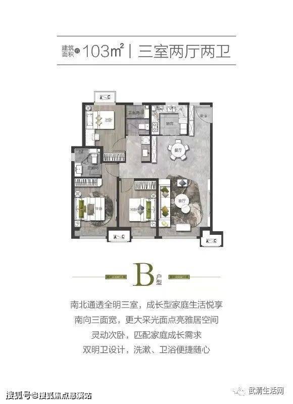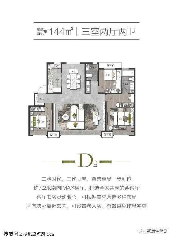 全面革新的第七代宽厅人居,目前在武清市场上可以说是绝无仅有的存在。85㎡户型客厅尺寸做到了很多百平米以上户型都达不到的5.4米宽厅。120平米主力三居,保证5.3米宽厅的基础上,以经典的三叶草户型布局,将家庭成员的房间设置在方正户型各角。既保证了独立私密,又能相互照料。144平米的户型可谓惊艳,客厅开间达到7.2米,家里就能轻松拥享40多平米的“宴会厅”。