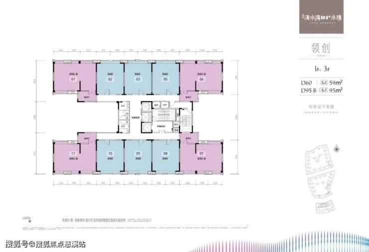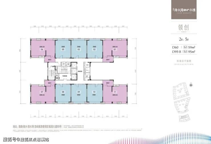 1、领创1栋2栋3栋5栋:面积59和95平米