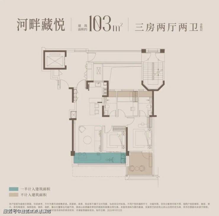 ・103㎡小高层户型:采用三开间朝南布局,注重收纳功能,玄关柜容积约4立方米,厨房通过优化布局预留更多操作空间。该户型还配置了两款可选的背景墙设计,主卧套间配备独立露台。在配置方面,与152㎡户型保持一致,包括智能门锁、空调新风系统、品牌厨电及卫浴等。