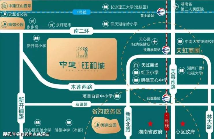 长沙中建钰和城是由中建信和地产开发的大型综合性住宅项目,位于天心区木莲路与新姚路交汇处西北角,紧邻明德天心中学,地处长沙主城正脉,周边配套成熟。