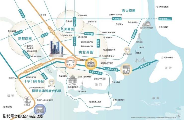 珠海与澳门极点桥头堡,扼守双城风云际会的湾区之内。眼前是前山河的锦绣、澳门城的璀璨,亦是珠海的繁荣,天赋区域,成就珠海CBD坐标级作品。
