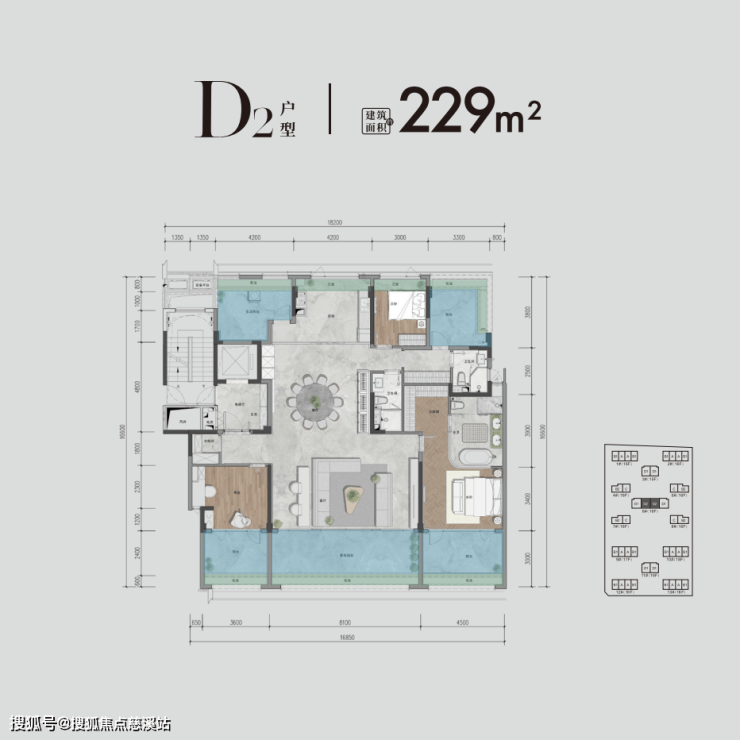 吉祥16号先天禀赋完美,地块方正有利于对称布局,容积率2.5、绿地率40%,规划13栋15-18层纯板楼,共649户,均为一梯一户或两梯两户,面积段为约111—229㎡大平层,共有6种户型。