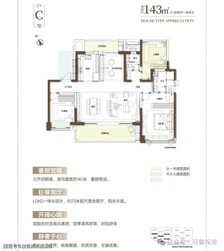 户型设计:首推一期臻园低密洋房,主力户型为127-143㎡三四房,部分户型带花园或双露台,专梯专户设计。户型采用可拓展LDKG+X一体化设计、南北双阳台设计,景观阳台带270°转角。