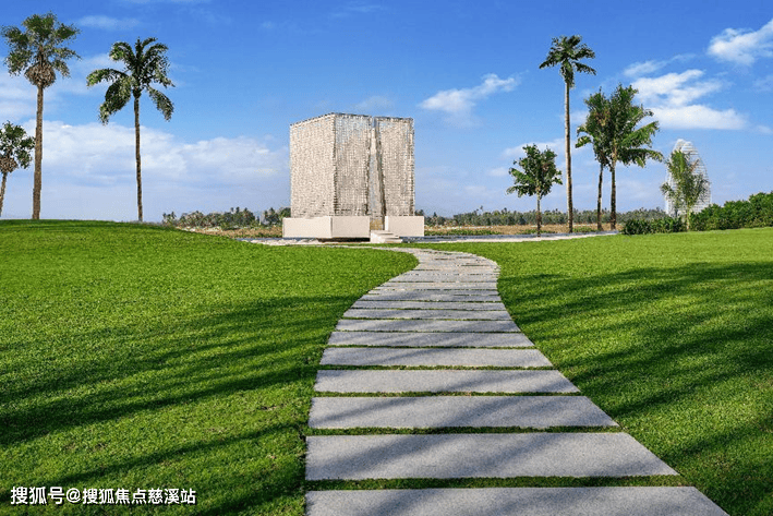 基于三亚原始地貌,项目增加地形起伏和曲线,提升空间光影明暗对比,利用植物与地形的起伏巧妙完成了既辽阔又紧密、既幽密又舒缓的空间排布,打造类果岭系统,呈现丰富的软质视觉层次。