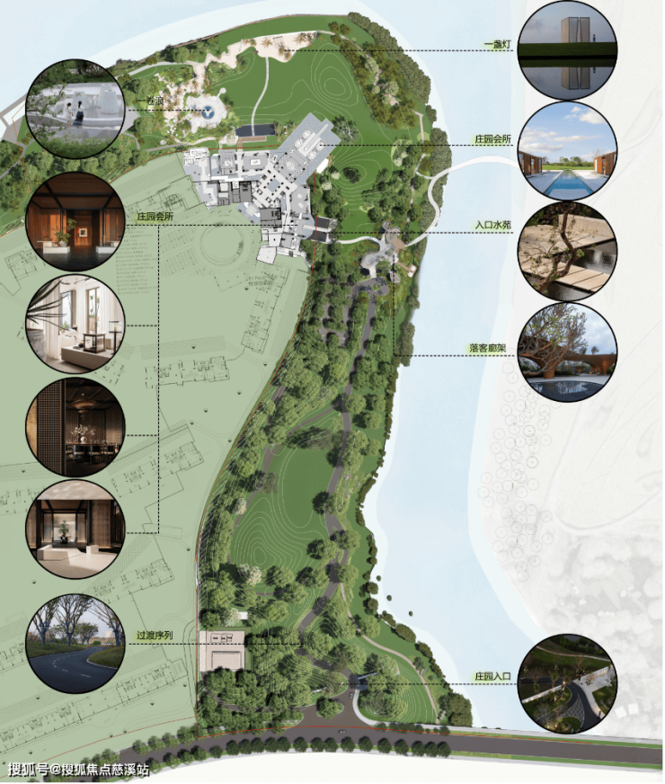 于外,景观以场景构建风景,致力于营造出“生活在别处”的风情感,用自然起伏的地形、粗犷野趣的大树、浓郁深邃的背景林营造热带庄园的宏大场景,用沙生植物、落客廊架、水苑等精致场景构建度假氛围和尊崇体验。
