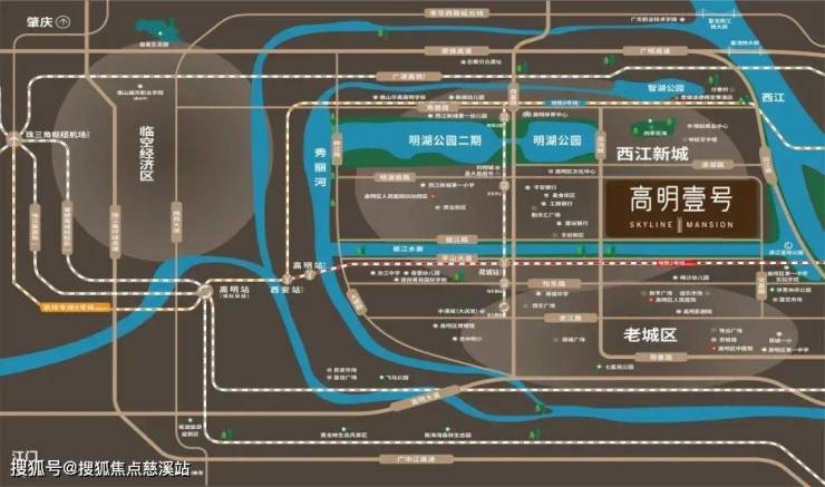 与富湾作业区、荷城作业区、高明客运港,江肇高速、江罗高速、广明高速、高恩高速、佛肇高速、肇明高速等十大高速公路,广湛高铁、深南高铁、珠江肇高铁、肇顺南城际,形成水陆空铁“四维”交通路网,实现对接湾区主要城市的“一小时交通圈”,让美好生活的一切想象在这里兑现。