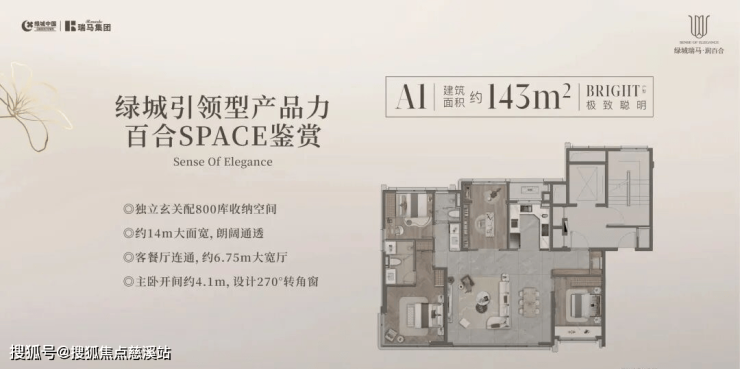 143㎡三/四室:独立玄关+800库收纳空间;约14米面宽;客餐厅连通,约6.75大宽厅;主卧开间约4.1米,带270度拐角落地窗。缺点是有两个北卧。