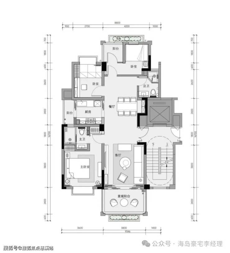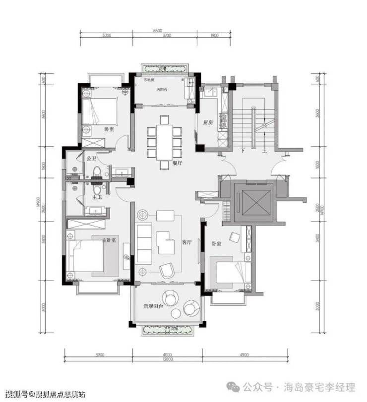 2、B户型:建筑面积约120平方米三房两厅两卫