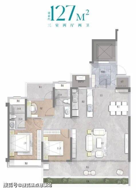 建面约127㎡舒适三房:空间布局合理,兼顾度假与生活