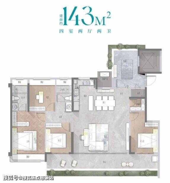 建面约143㎡平层奢宅:方厅+双厨设计,适合多人家庭欢聚