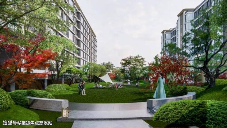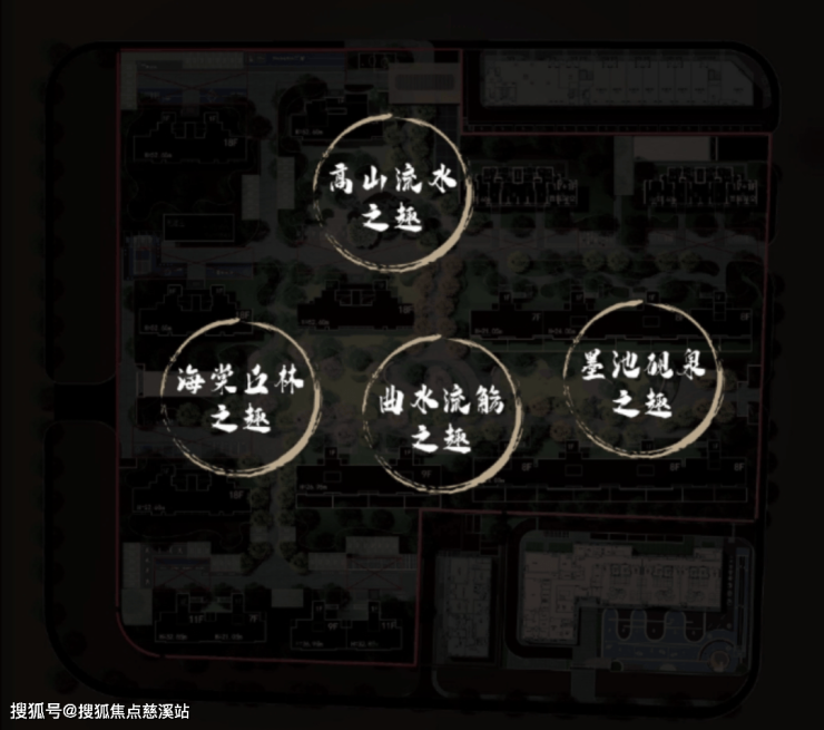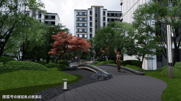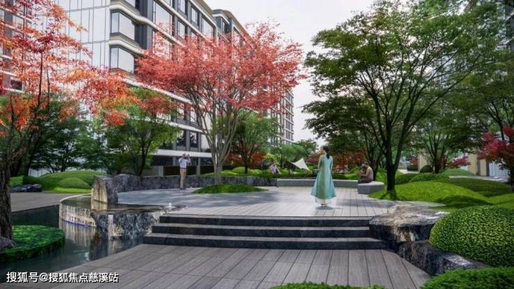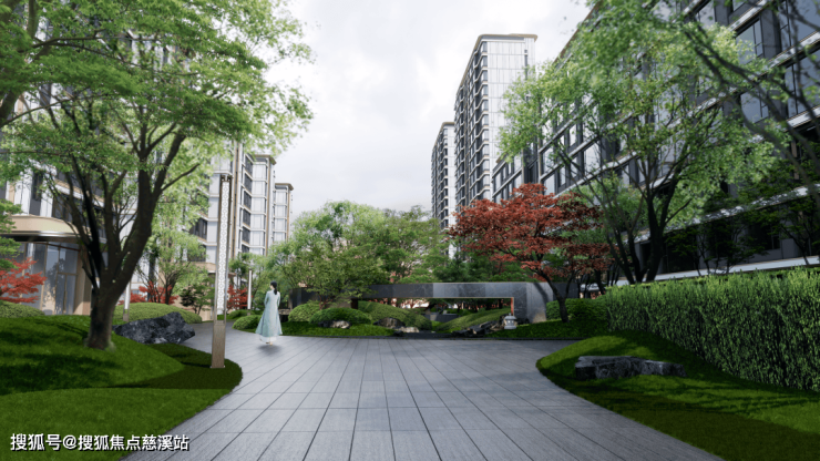中轴两侧分别设计海棠花区的“海棠丘林之趣”以及“枯山水”形式的“墨池砚泉之趣”。无论是与三五朋友赏花欢聚,还是独享僻静之境,总有一处趣境天地满足,让每位业主享受不同的娴雅生活。