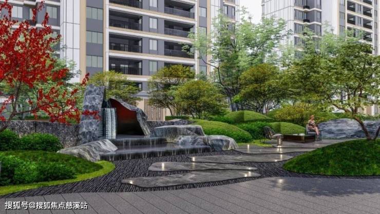 新中式风格讲究处处皆是景,连贯性的风景动线更显东方韵味。小区入口与四趣中的“高山流水之趣”精巧串联,迎面可见的汩汩流水与沉稳石山,一动一静间更显中式造诣。