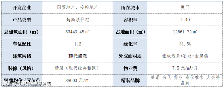 项目位于厦门市思明区厦禾路与将军祠路交叉口东南侧,规划三栋超高层第四代立体生态住宅,产品为建面约199-575㎡平层住宅,全盘共205户。国贸地产与安控地产联合开发,依托企业品牌基础,注重社区氛围营造与产品品质打造。