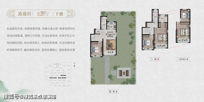 约157㎡下叠产品,院落空间非常大,二层预留改造空间,可实现不同居住需求的完美匹配。