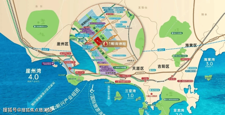 聚亿椰海锦程项目所处的区域属于是崖州湾科技新城内的南繁科技城近中心板块。在崖州湾科技新城的总体规划纲领以及政府近些年来重点发展的政策背景之下,崖州湾科技城内的各项基础设施发展迎来了日新月异的变化,诸如:国家级重点科学实验室的落地生根、四通发达的路网、大型市政公园、三甲级医疗机构的引入以及知名学校的落地办学,都为南繁科技城的未来发展注入了硬件上的先决优势。
