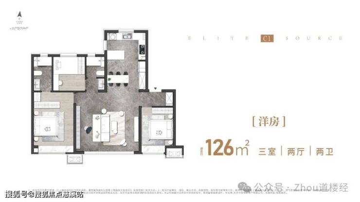 126㎡通透三室两卫全明户型
