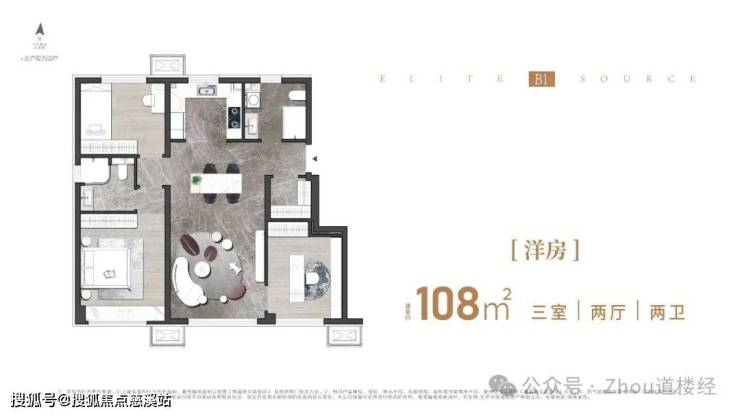 108㎡通透三室两卫全明户型