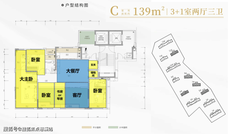 所以这个户型可以做出一个大四房+大客厅+大餐厅,非常好住,估计开发商自己都想偷偷留两套。