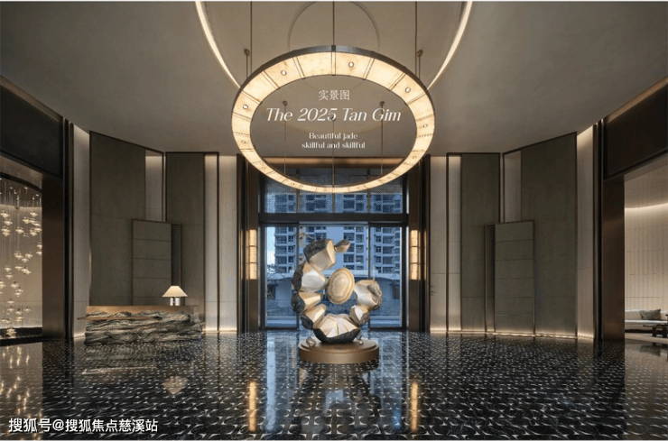 皇家白玉的仪式感:归家环岛前庭中央,整石切割的皇家白玉发光圆盘,形似平安扣,寓意“财运亨通”;7米高黄铜大门左右矗立四幅皇家白玉玉璧,晨光漫溢时,温润玉泽如神鹿衔星坠入凡尘。