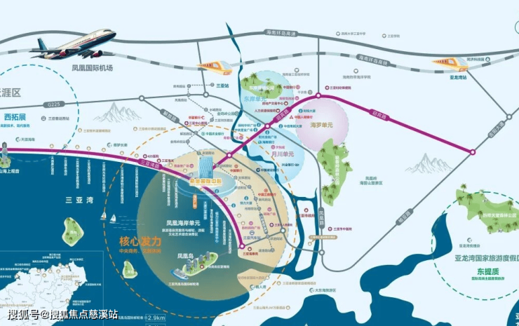 凤凰海岸单元——三亚中央商务区核芯片区,定位为旅游港自贸服务与邮轮、游艇、文化艺术综合消费区。紫金国际中心落位于此,匠造建面约6万方三亚湾芯·滨海都会综合体,实现区域城市服务、旅游文化、总部经济等产业资源全覆盖。